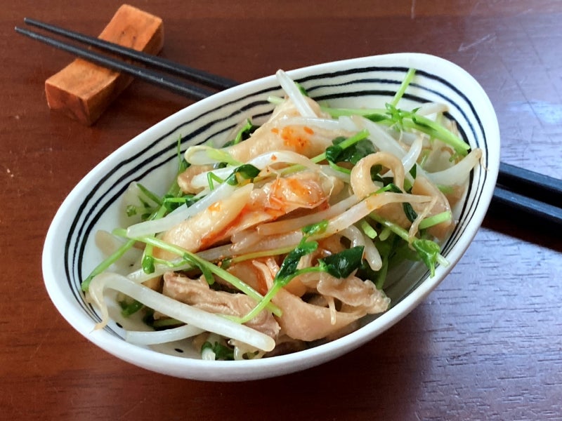 「ラー油ちょいたらしの皮ぽん豆苗」