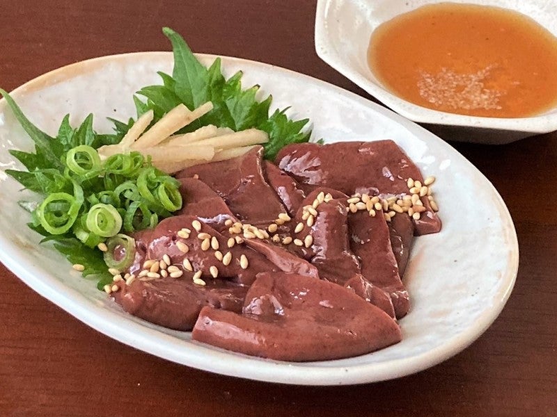 塩とごま油で、今やなつかしいレバ刺しが食べられます。 |