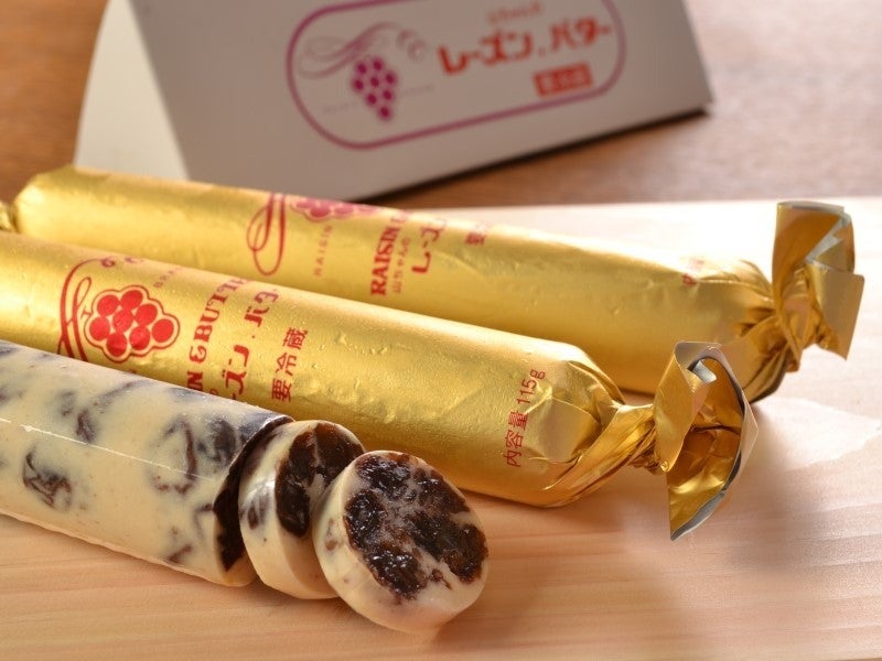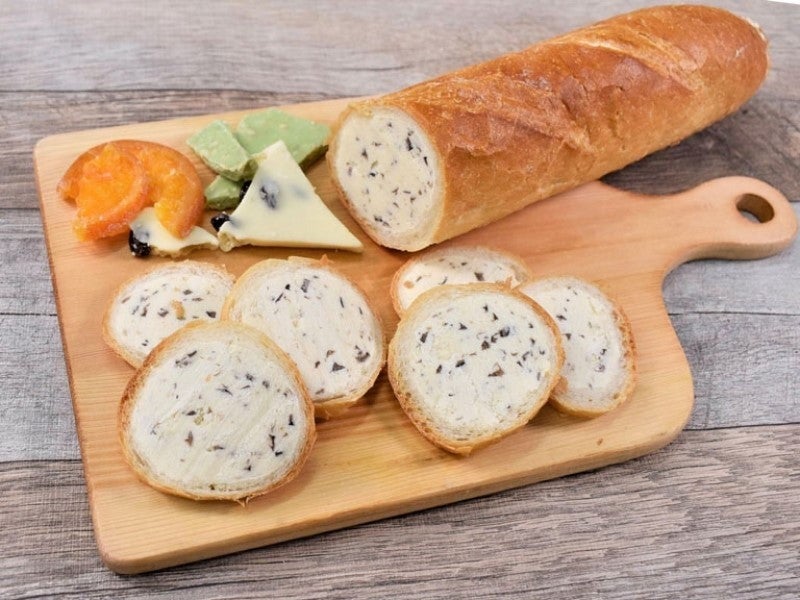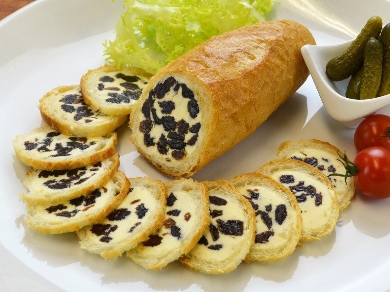 口当たりなめらかなバターとカリフォルニア産レーズンで作ったレーズンバターをフランスパンの中にぎっしり詰めました。オードブルに最適な一品です。