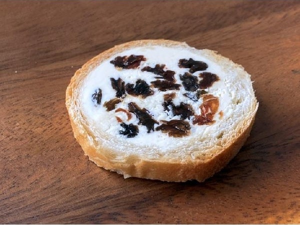取り合わせ自体は珍しいものではありません。でも、クラッカーやバゲットスライスに「乗せた」では当たり前のところを、フランスパンに「詰めた」にしたところが大きなポイント。新しく楽しいレーズンバターの提供ができるようになりました。