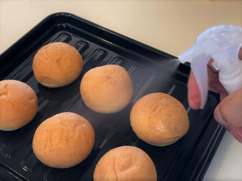 ソフトなふっくらタイプのロールパンも、霧吹きで表面に水分を与えます。