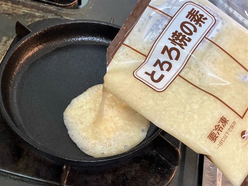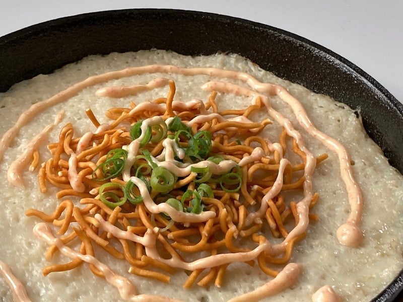 鉄板やフライパンを使わなくても提供できる「山芋鉄板焼き」もあります。とろとろ感では「とろろ焼きの素」に敵いませんが、皿盛り提供ができるので、扱いが簡単です。