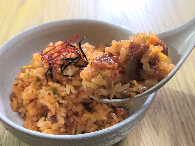 チャンジャを「うまみと辛みの調味料」として利用したメニュー。キムチ炒飯よりもコクがあってお酒にもよく合います。薬味が効いたチャンジャは加熱しても生臭くなりません。