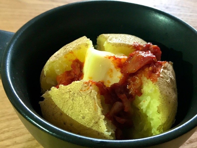 塩辛じゃがバターをチャンジャでアレンジ。ホクホクのじゃがいもに、バターとチャンジャがしみ込んでいきます。