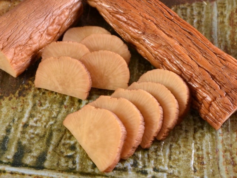 いぶりがっこの特徴はなんといってもスモーキーな燻製の香りにあります。ぱりぱりと固めの歯ごたえと広がる燻香、発酵による旨みや塩気はお酒のあてにぴったり。くせになるおいしさです。