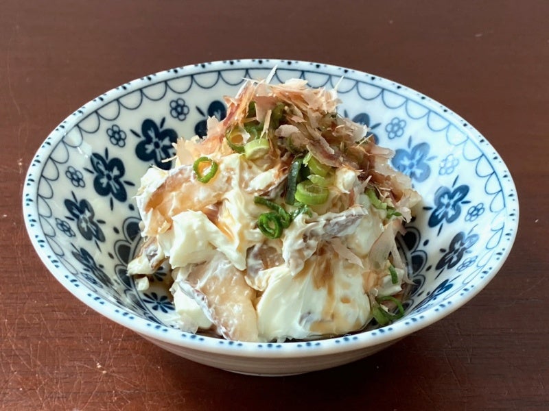 和風の居酒屋では一段と和に寄せた盛り付けもありました。ねぎ・かつおぶしを加え、ぽん酢をかけるのがポイントです。