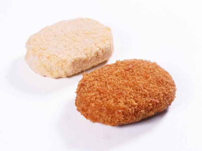 ばれいしょ(国産)、牛肉、玉ねぎ、牛脂、砂糖、粒状植物性たん白、醤油、乾燥マッシュポテト、マーガリン、牛乳、脱脂粉乳、食塩、香辛料、衣(パン粉(卵を含む)、小麦粉、植物油、脱脂大豆粉、ショートニング、食塩/調味料(アミノ酸等)、カロチノイド色素
