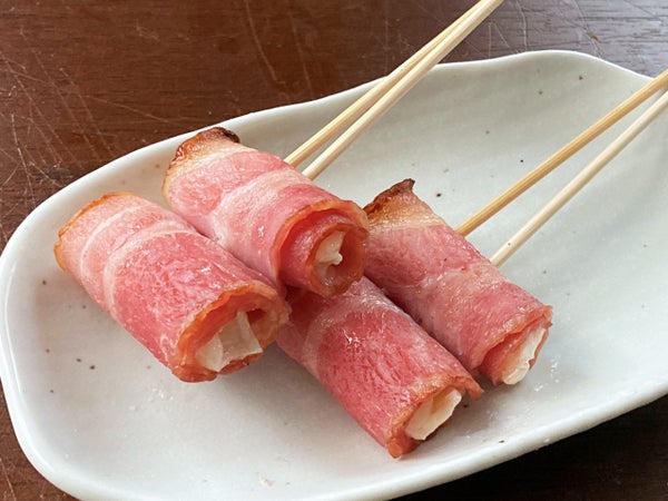 焼けたベーコンが香ばしい!1本に2貫刺しです。
