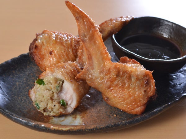 5種類の野菜(キャベツ・白菜・玉葱・葱・ニラ)をたっぷり使った特製の餃子の具を、手羽先の中にぎゅっと詰めました。1本で大満足のボリュームのある一品です。