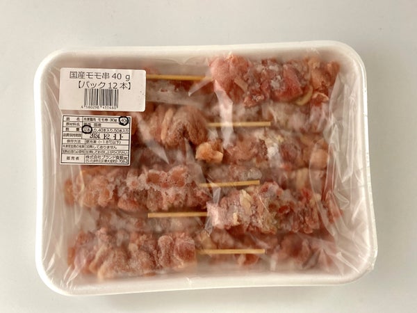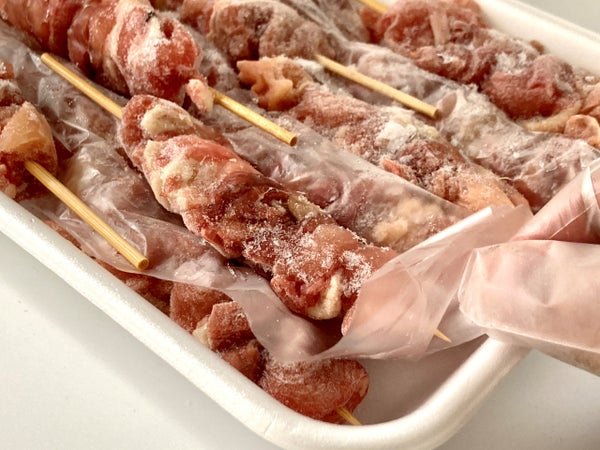 国産の鶏もも肉を15cm丸串で打ちました。国内工場で加工しています。