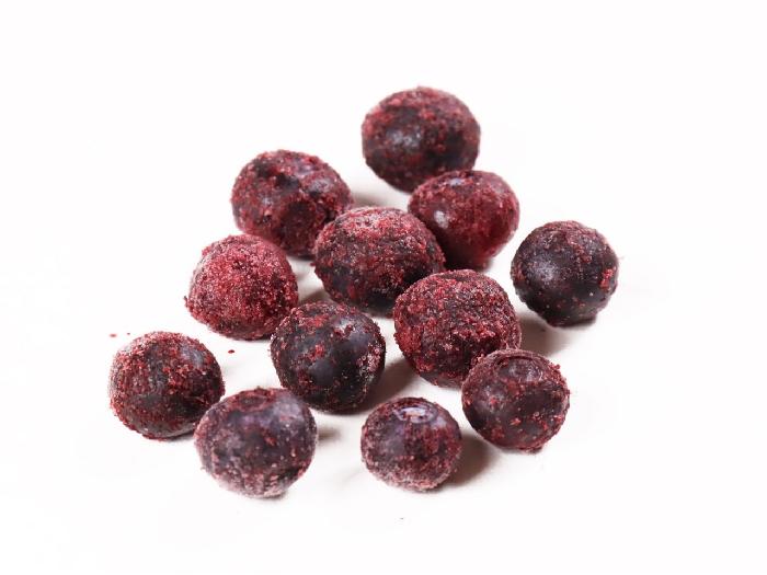 アメリカまたはカナダ産のブルーベリーを使用。粒は多少の大小があります。