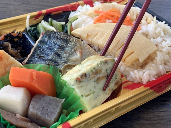 卵白を主原料にした卵液を使い、野菜を散りばめた白いたまご焼きです。すり身を使った寄せ物とは異なり、たまご焼きのやわらかい食感を残しています。
