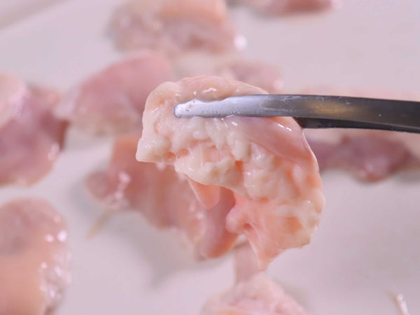 やわらか加工処理をした牛小腸です。加熱時に固く締まるのを抑えます。(あらかじめ処理してありますので十分に加熱してください)