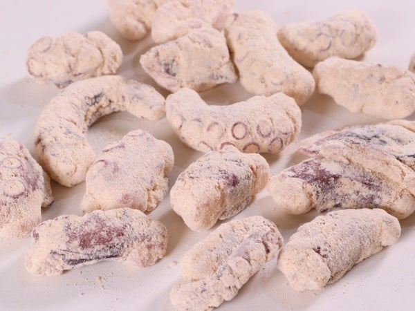 タコ(中国産)、澱粉、パン粉、コーン粉末、食塩、コショウ末、酵母エキス、パプリカ、ジンジャーパウダー、ぶどう糖、唐辛子、香辛料、ガーリック末、植物繊維/加工デンプン、pH調整剤、増粘剤(加工デンプン)(一部に小麦を含む)