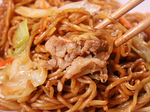 鉄板で焼き上げた焼そばの香り、風味、色合いを再現しました。時間が経ってもソースの照りが失われません。