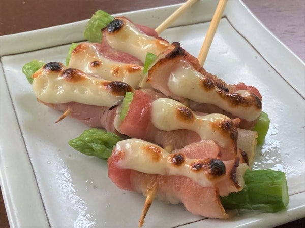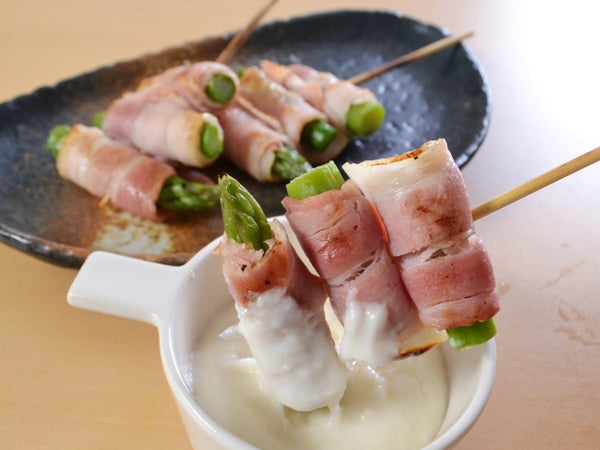 「アスパラベーコン串のこんがりチーズソース焼き」