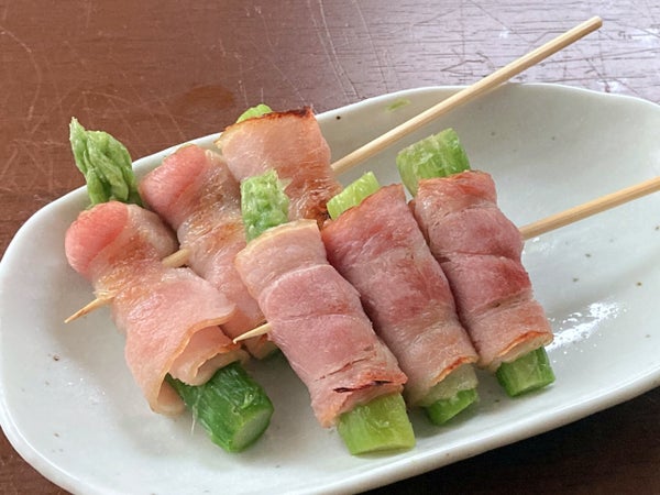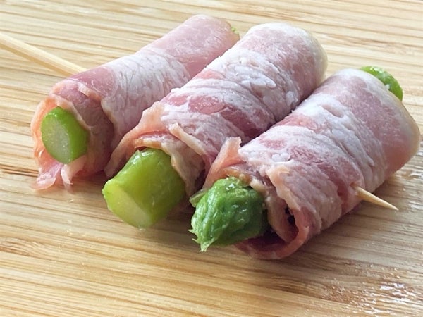 | アスパラ/ベーコン | 太アスパラ1本 | 細アスパラ数本/薄切りベーコン | アスパラ数本 | |||