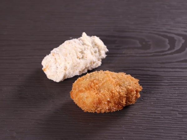 かき(広島県産)、衣(パン粉、とうもろこし粉、小麦粉、大豆蛋白、食塩、砂糖、卵白粉末、植物油脂)/加工澱粉、乳化剤、増粘多糖類、調味料(アミノ酸)、イーストフード、V.C、(一部に小麦、乳成分、卵、大豆を含む)