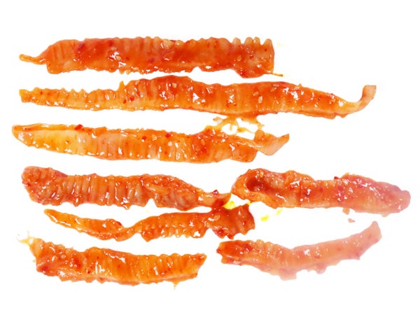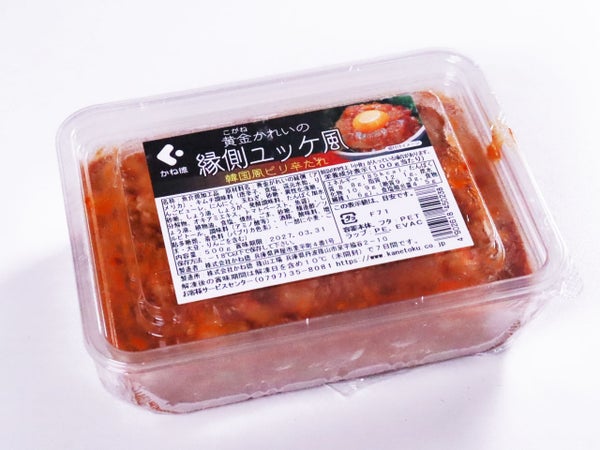 黄金かれいの縁側(アメリカ)、キムチ調味料(唐辛子、食塩、還元水飴、りんごピューレ、にんにく、玉ねぎ、砂糖・異性化液糖、しょう油、しょうが、発酵調味料、たんぱく加水分解物、オキアミエキス、トマトペースト、魚醤)、しょう油、植物油、食塩、焼酎、ごま、砂糖、醸造酢/ソルビトール、調味料(アミノ酸等)、酒精、酸味料、増粘多糖類、着色料(パプリカ色素)、(一部に小麦・ごま・大豆・りんごを含む)