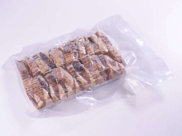 焼き色がついたカット済み・水煮済み・味付け済みの冷凍穂先たけのこです。