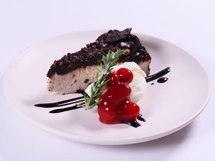 クリームチーズをふんだんに使用したNYスタイルのチーズケーキに、ビターなココアクッキーを加えました。