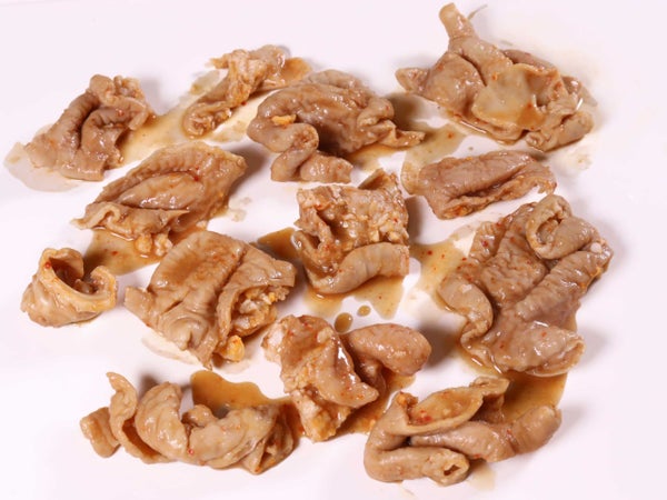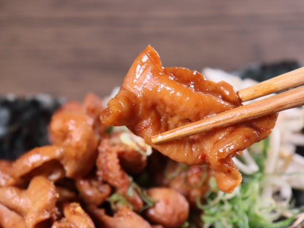 豚大腸(国産)、味噌、みりん、発酵調味料、醤油、食塩、もろみ味噌、水飴、しょうゆもろみ、ごま油、砂糖、ごま、唐辛子、にんにくペースト、ワイン、酵母エキス/調味料(アミノ酸等)、カラメル色素、増粘剤(加工でん粉)、(原材料の一部に小麦・豚肉・大豆・ゼラチン・鶏肉・ごまを含む)