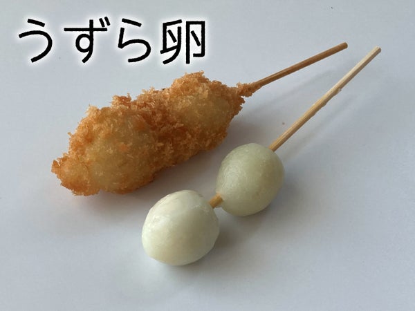 うずら卵、豚ロース肉、れんこん、えび、なす、魚肉(グチ)、玉ねぎ、でん粉、大豆油、食塩、砂糖、卵白粉、大豆たん白、麦芽糖、こしょう、衣(パン粉、小麦粉、でん粉、食塩、卵白粉、こしょう)/加工でん粉、調味料(アミノ酸)、ソルビット、貝Ca、ポリリン酸Na、(一部に卵、えび、小麦、豚肉、大豆を含む)