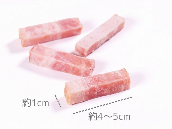 約1cm角の太切りベーコン。長さは4~5cm。