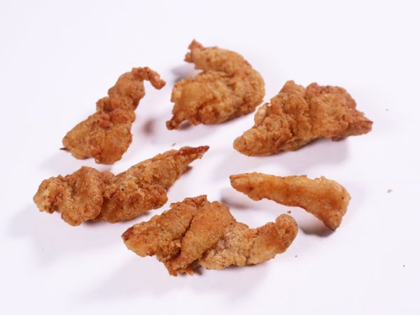 鶏軟骨(肉付き)(ブラジル産)、ミックス粉、(パン粉、食塩、その他)、フライ用調味料(小麦粉、パン粉、その他)/加工デンプン、増粘剤(加工デンプン、増粘多糖類)、調味料(アミノ酸等)、カゼインNa、パプリカ色素、香辛料抽出物、(一部に小麦・乳成分・大豆・鶏肉を含む)