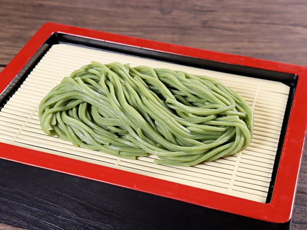 めん(小麦粉、そば粉、小麦たん白、抹茶粉末、卵白粉、クチナシ色素)