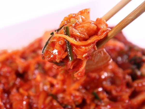新鮮な国産白菜を使用した、本格発酵キムチです。職人が仕込んだこだわりのヤンニム(キムチの素)には、桜えびの仲間であるアキアミの塩辛と、イカの出汁でコクをだしました。唐辛子の味・色が際立つ辛口タイプです。
