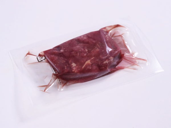 カット済みのユッケ用馬刺しです。個食パックなので解凍後、味付けするだけで提供できます。包丁を使う必要もなく、衛生面でも安心です。