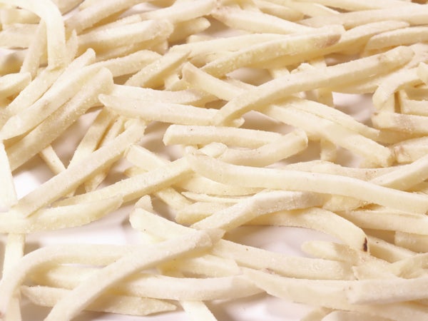 1/4インチ(約6.3mm角)で皮なし。ファストフードで広く利用されている細めのフライドポテトです。5~7cmの長さを中心規格としています。