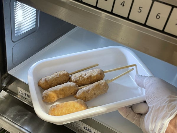 凍ったまま皿に移してラップをかけずにレンジ(600W)で2分(4本)加熱してください。