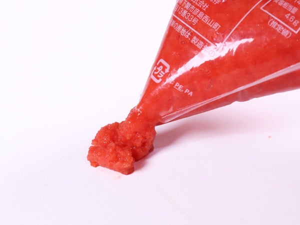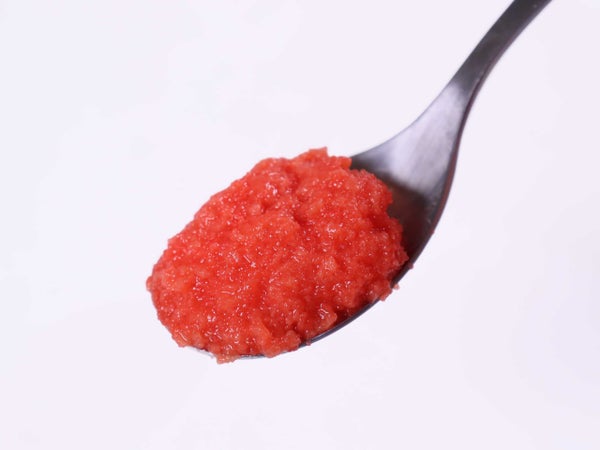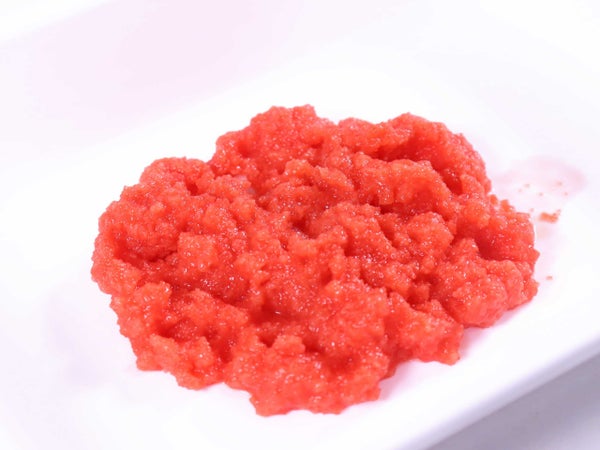 粒感は強くありません。鮮やかな赤色と明太風味を付けたいときに、明太味ソースのようにお使いください。