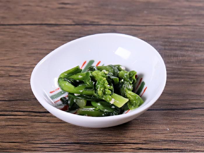 わさびのピリッとした風味が利いた特製だしで漬け込んだ菜の花のわさび漬けです。柔らかい穂先だけを使っています。