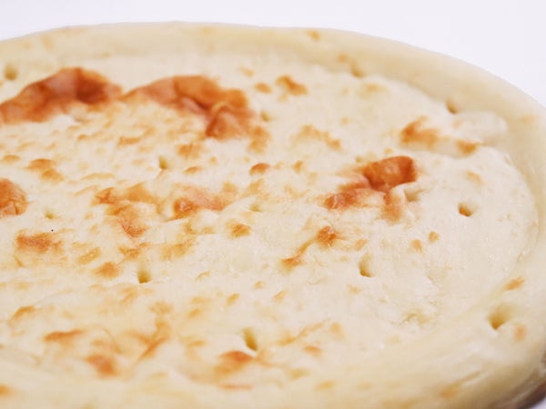 黄色みが強い生地で、焼き上がりの具材やソース色とのコントラストがいい生地です。石窯で焼いたような香ばしそうな焼き目。