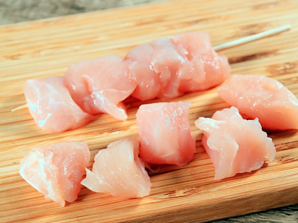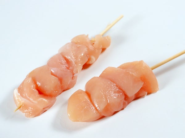 国産鶏のささみをカットし、4~5個を串打ちしました。15cm串。