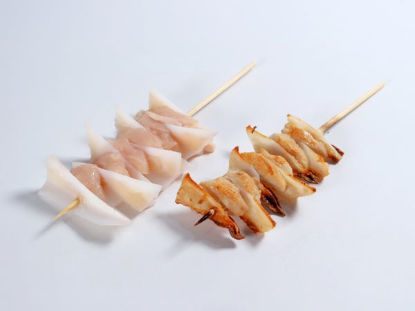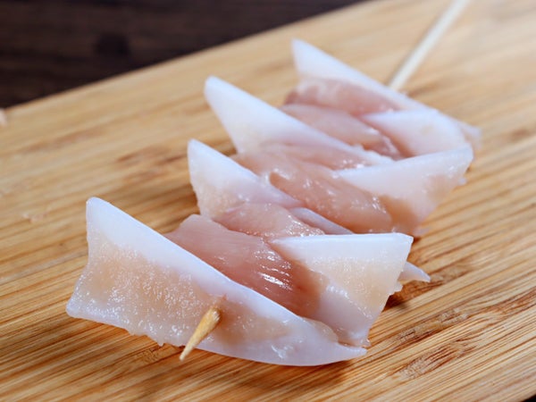 タイ産の生のヤゲン軟骨と鶏ムネを使用して串にしました。