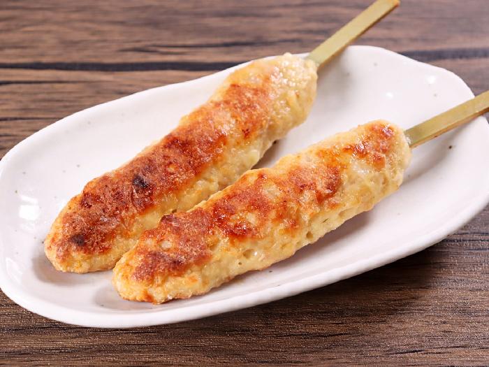 刻んだベーコンと粒状チーズを混ぜ込んだ、変わりつくね串です。それらがつくねにコクと風味を加えていますが、奇抜な味ではありません。