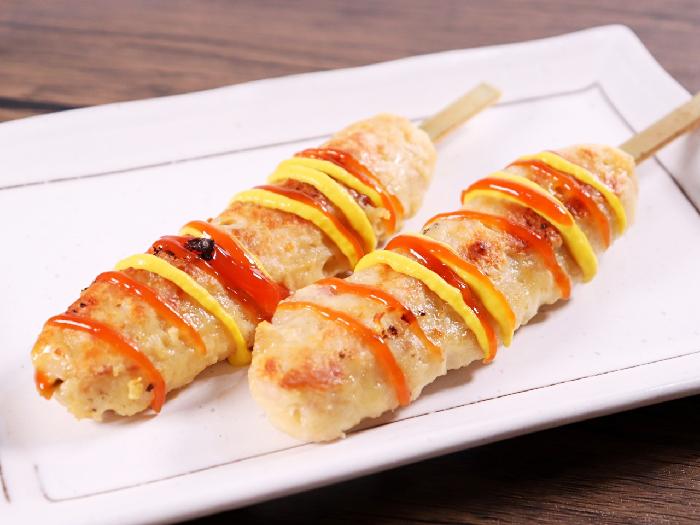 大人気のつくね串にベーコンとチーズを入れました。大人にも子供にも喜ばれる組み合わせです。