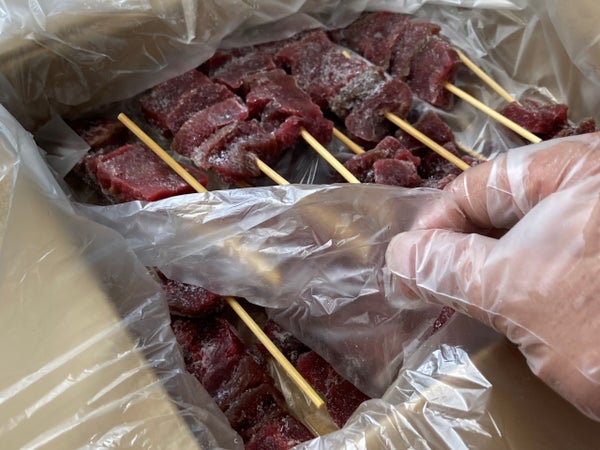 シートをかませて串の間隔を開けてあるので、冷凍のままほぼ1本ずつ取り出すことができます。