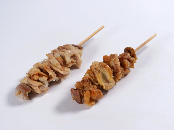 スチームした中国産の鶏(食管・気管・腺胃)を使用して串にしました。3~4羽から1本しか作れない希少な部位です。タレがおすすめ!