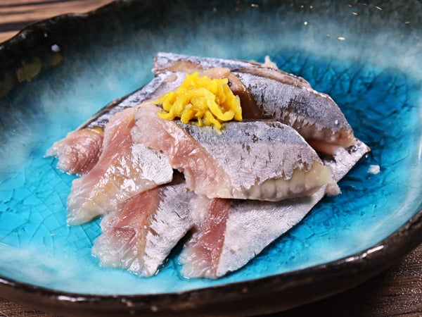 台湾産(または国産)のさんまを3枚におろし、レモンと酢でやさしく締めました。生の食感を残し、鮮度の良さが伝わる「しめさんま」です。