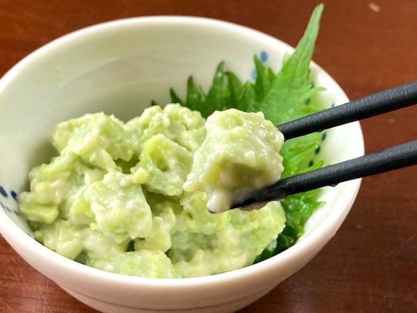 からしマヨソースを絡めました。ぴりっとした風味の中に、枝豆の甘みと香り、コリコリ・ポリポリした魚卵の食感が楽しい、他にはない味わいです。