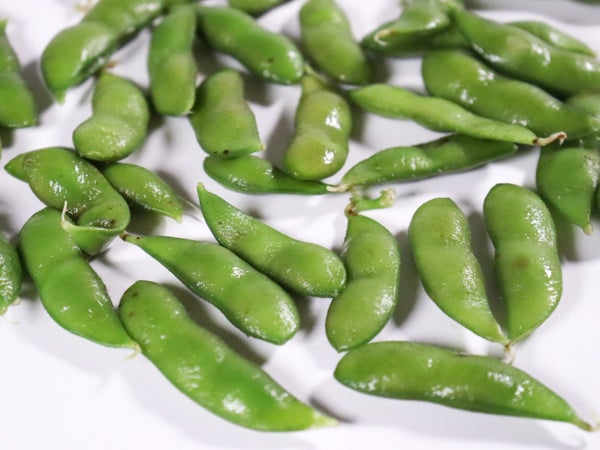 茶豆の名の通り、さやの毛や薄皮がやや茶色みを帯びています。さやは小さめですが、中の豆の大きさは一般的な粒サイズです。コクのあるうまみと香りが特長です。