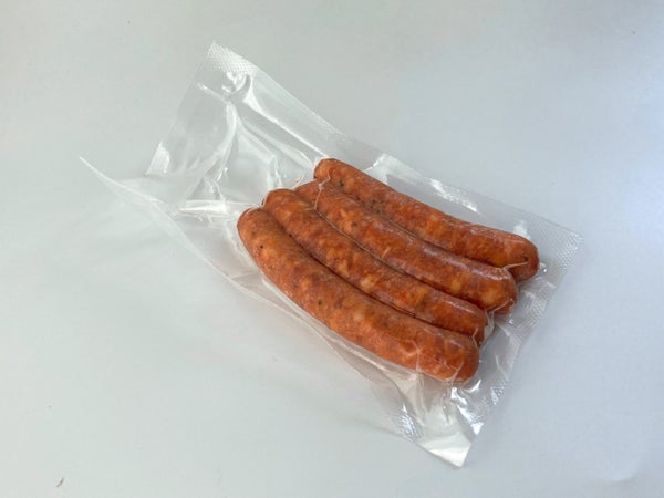 5mmの粗さで挽いた岩手豚を詰め、ぎしっと肉が引き締まった、ゴリゴリした歯ごたえのチョリソーに仕上げました。しっかりとした辛さもちゃんとあって、肉をかみしめるほどにじわっじわっと辛さが出てくる感じです。冷めるとより固めに締まってしまうので熱々でお楽しみください。