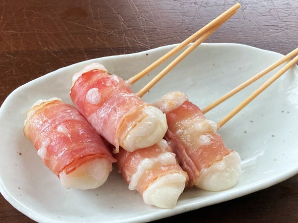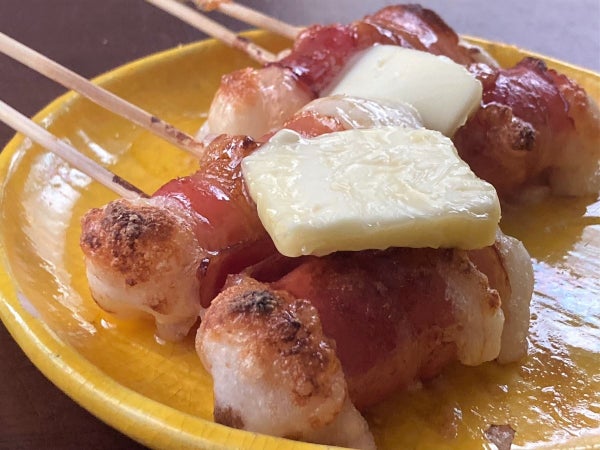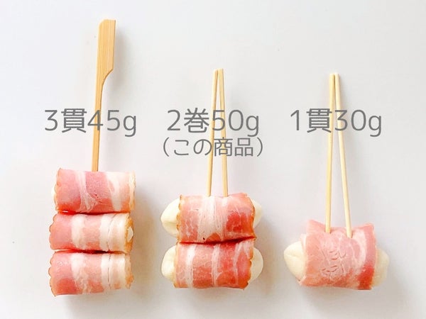 しっかり堪能できる2貫で約50gのもちベーコンチーズ串
