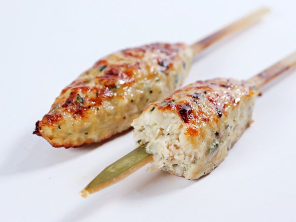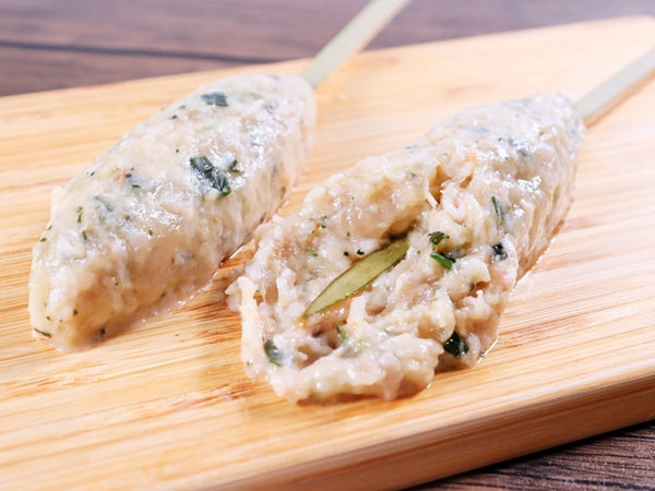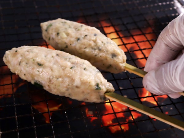 たまねぎ・にら・大葉など野菜の風味を刻み込んだ生つくねです。生から焼くことによって、弾力とやわらかさのあるつくね串に焼きあがります。