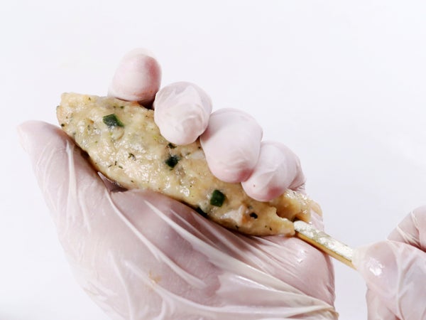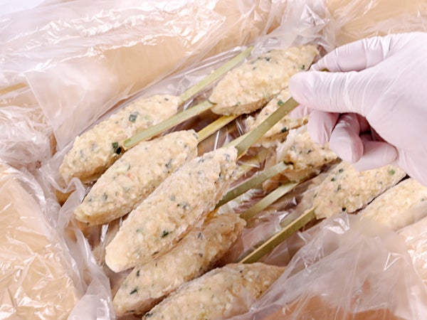 笹型に成形されているので解凍したらそのまま焼いてください。もしくは握ってお好みの形に整えてください。
